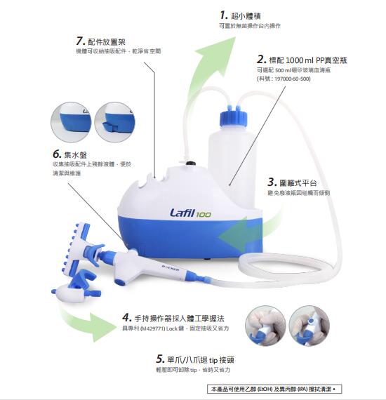 Lafil100 除主機(jī)外,所使用的配件均采用POM材質(zhì)制作,可直接蒸氣滅菌。