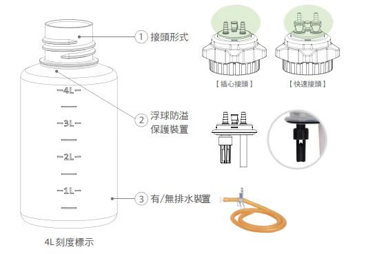 4000ml PP真空瓶 | 4000ml PP快接真空瓶 | 4000ml PP排水真空瓶 (含排水設備) |