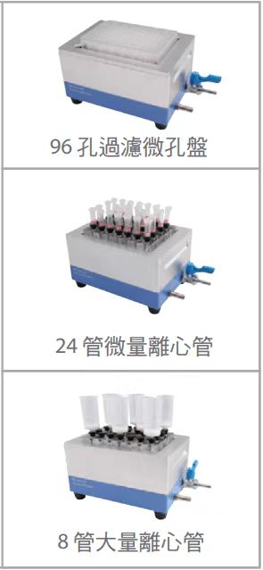 獨特設(shè)計的離心管轉(zhuǎn)置板以及魯爾(Luer)接頭,讓W(xué)elVac真空純化裝置成為一個高兼容的平臺,適用各種樣式的離心管及96孔過濾微孔盤。